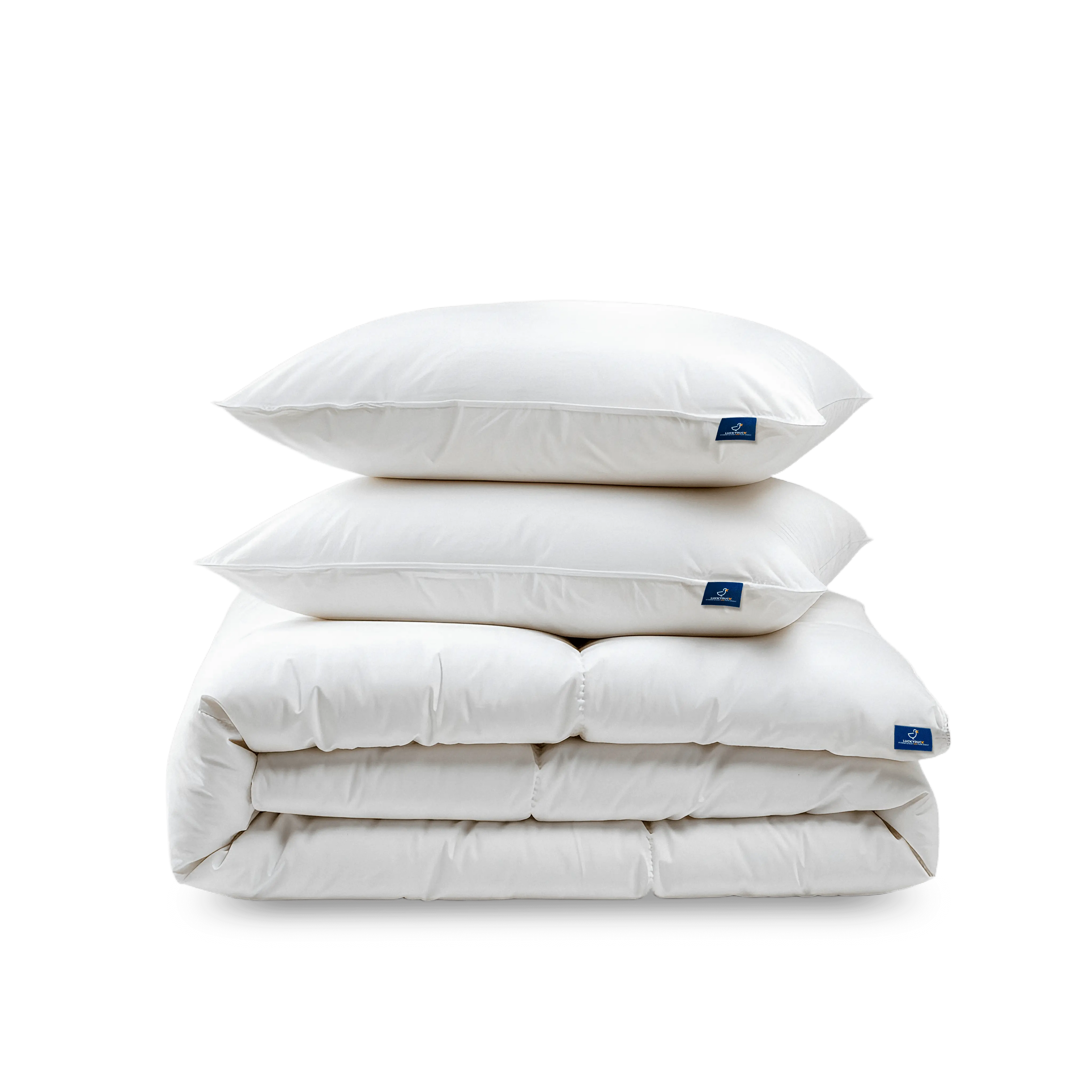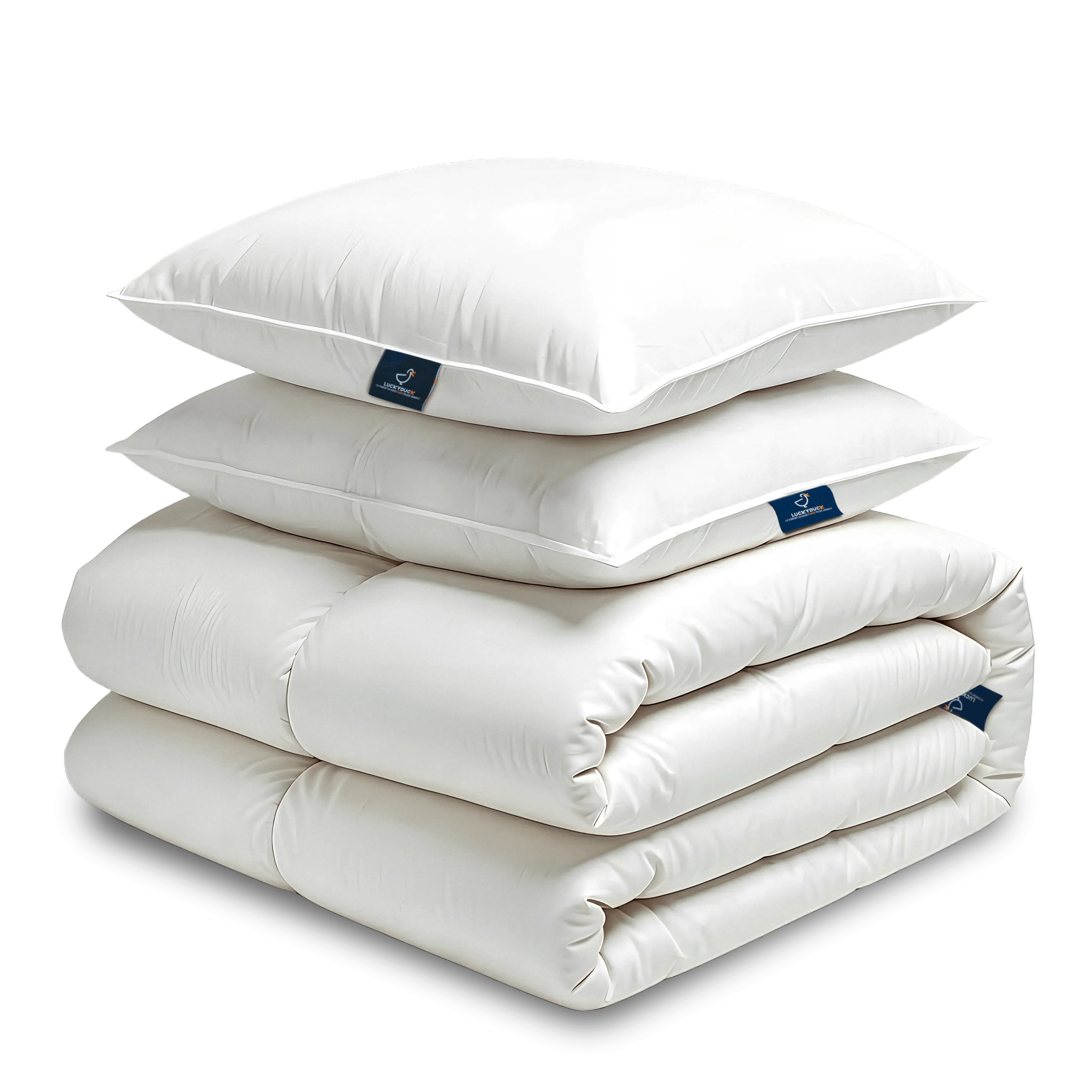 Choisir un pack LuckyDuck, c’est opter pour une solution cohérente et simple. Les couettes et les oreillers sont conçus ensemble, avec les mêmes exigences de confort, de durabilité et de finition.